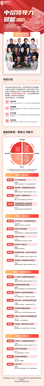 【中層領(lǐng)導(dǎo)力賦能線上專題】重磅上線,基于LEAD NOW! 領(lǐng)導(dǎo)力模型設(shè)計(jì),搭配業(yè)界權(quán)威專家團(tuán)隊(duì)線上體系精品視頻課程,賦能企業(yè)系統(tǒng)培養(yǎng)中層管理團(tuán)隊(duì)!聚焦21項(xiàng)關(guān)鍵能力,突破管理瓶頸,引領(lǐng)團(tuán)隊(duì)邁向卓越!